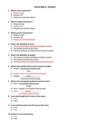 Year 8 Science Key Questions Teaching Resources