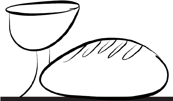 Black and white drawing of the bread and wine clipart free image download