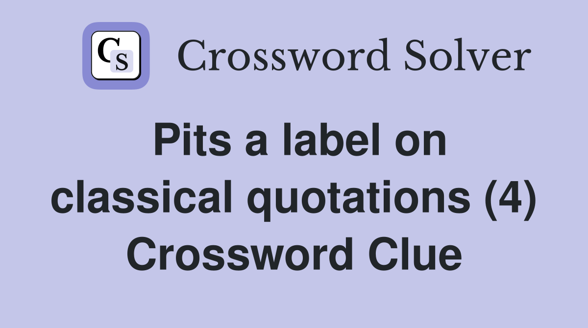 Pits a label on classical quotations (4) Crossword Clue Answers