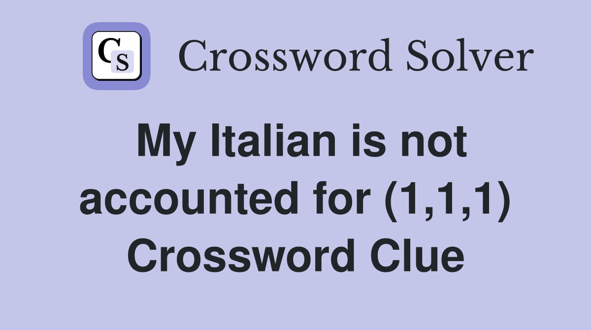 My Italian is not accounted for (1 1 1) Crossword Clue Answers