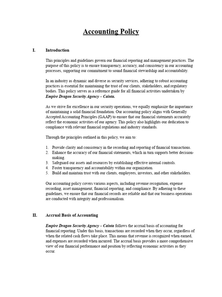 Sample Accounting Policy Template Template Samples
