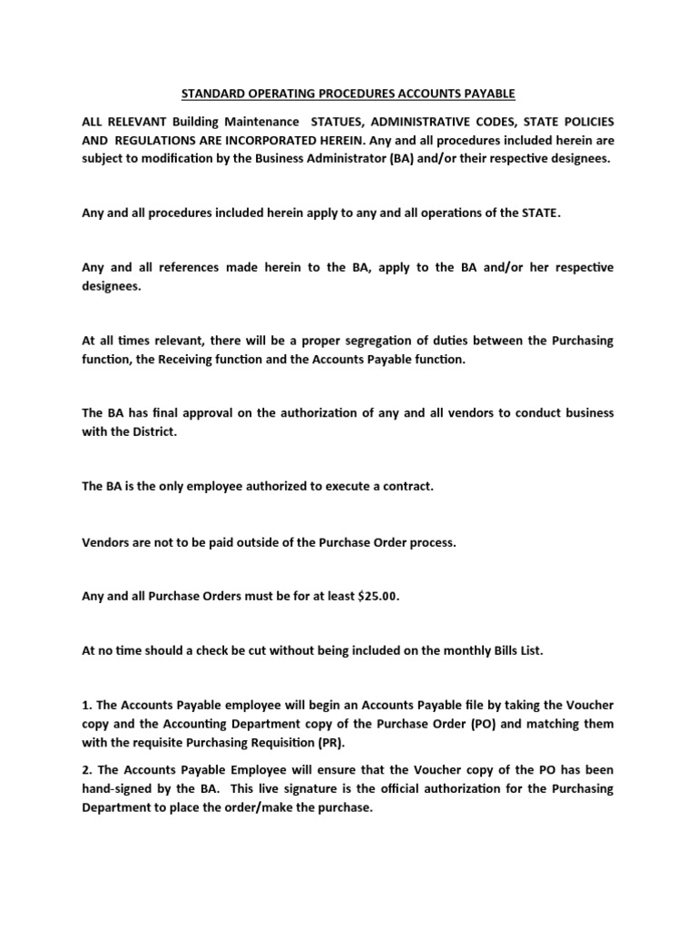 Standard Operating Procedure Template For Accounts Payable Web policy
