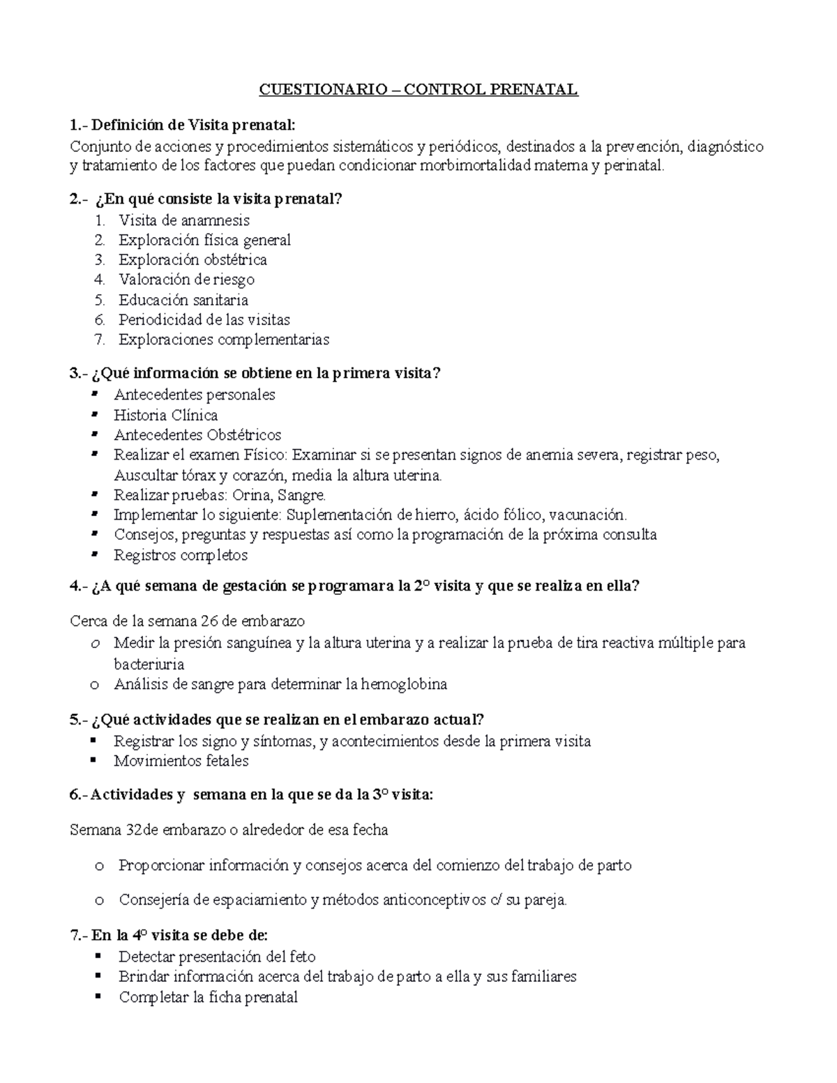 Cuestionarios de Control prenatal CUESTIONARIO CONTROL PRENATAL 1
