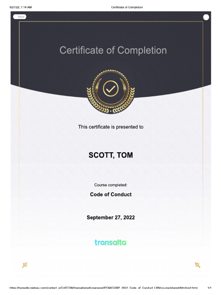 Certificate of completion PDF