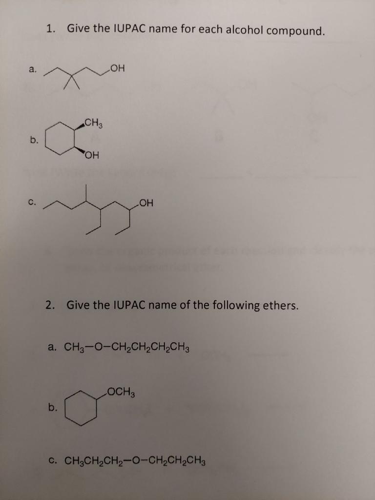 Solved 1 Give the IUPAC name for each alcohol compound a Chegg com