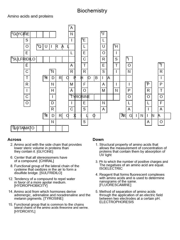 Amino Acid and Proteins Crossword PDF Amino Acid Molecular Biology
