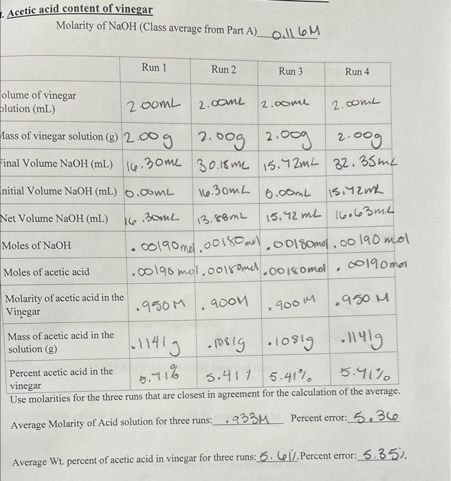 Solved Acetic acid content of vinegar Molarity of NaOH Chegg com