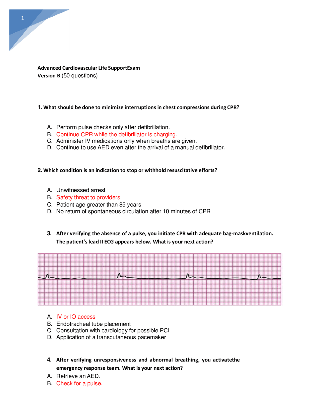 SOLUTION: Acls exam version b docx Studypool