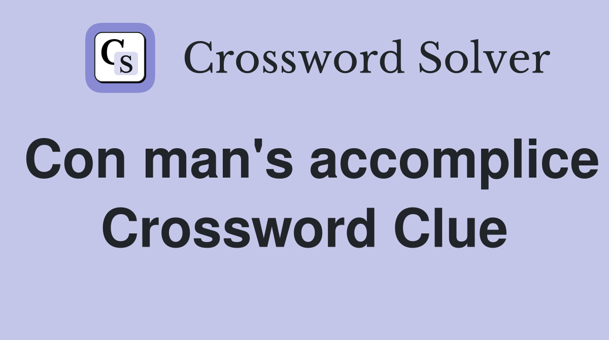 Con man #39 s accomplice Crossword Clue Answers Crossword Solver