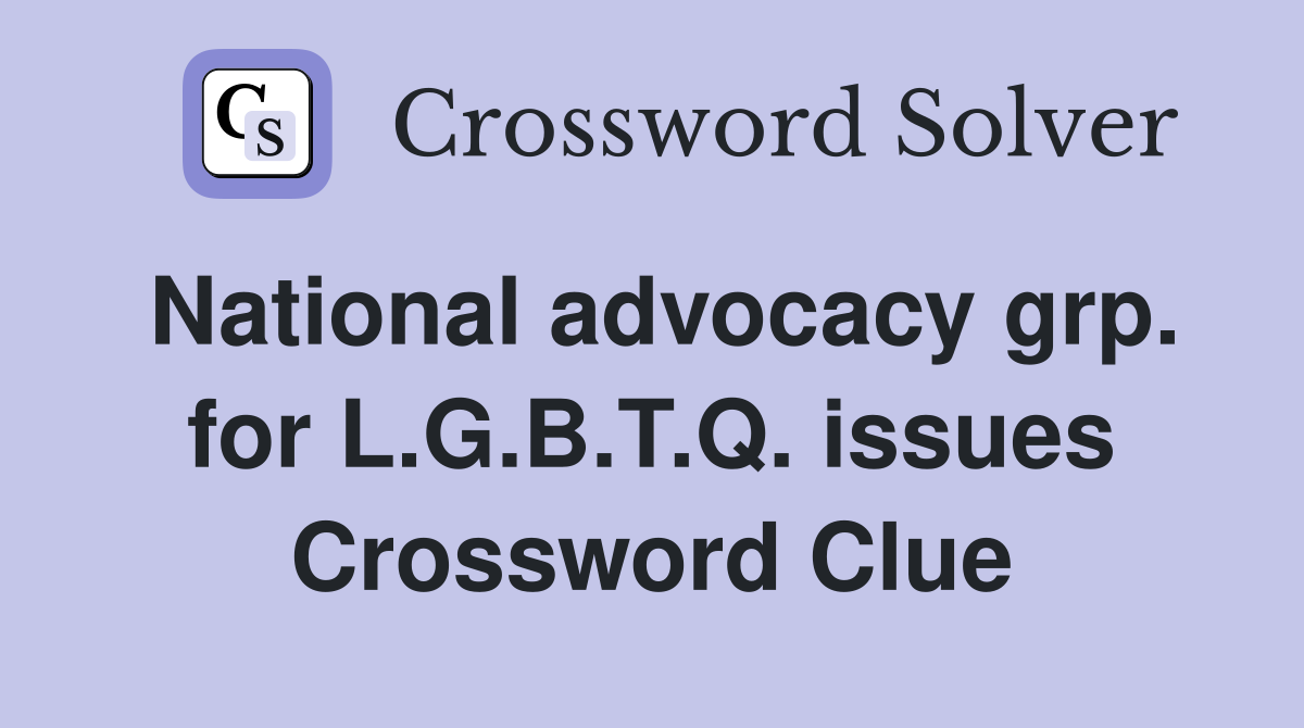 National advocacy grp for L G B T Q issues Crossword Clue Answers