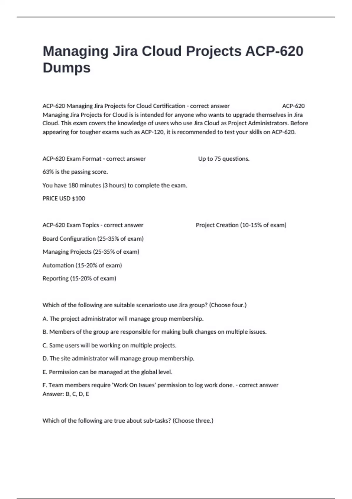 ACP 620 Managing Jira Cloud Projects Exam Preparation Updated ACP 620