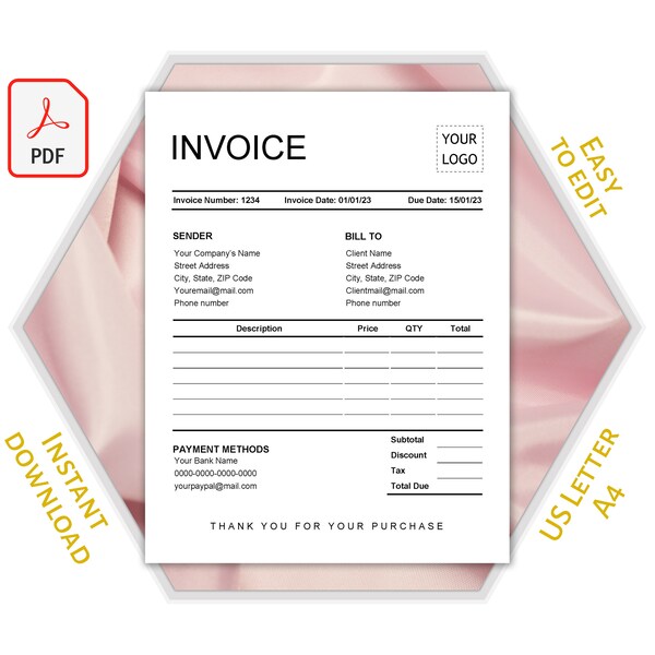 Invoice Template for Acrobat Readr Etsy Rechnungsvorlage Rechnung