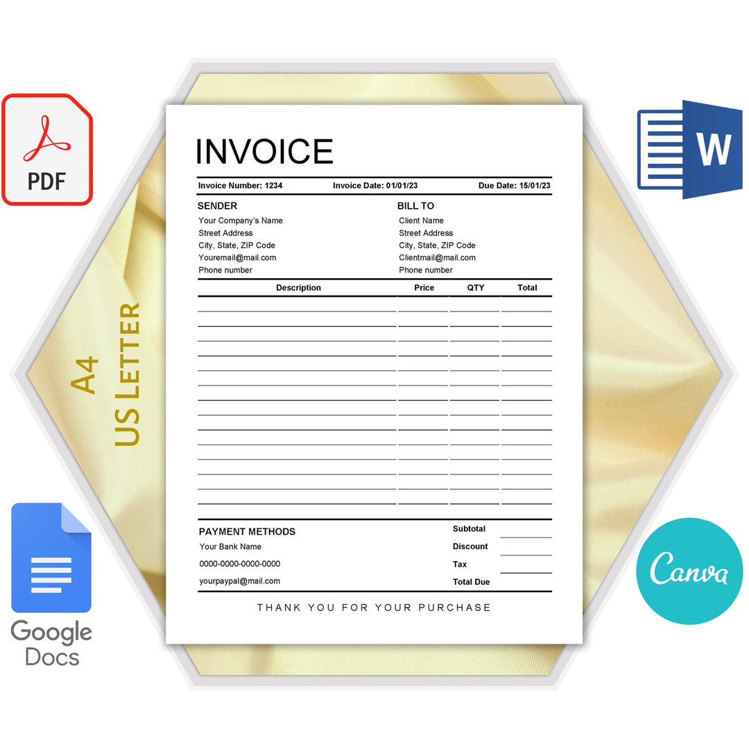4 Minimalistic Invoice Templates for Word Canva Google Docs and Adobe
