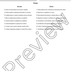Social Media Vocabulary Crossword Puzzle for English Learners and