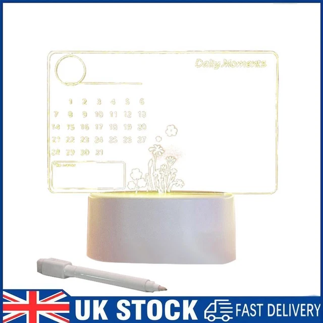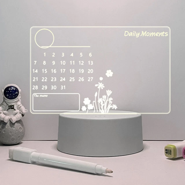 ACRYLIC DIY DESKTOP Lamp USB Calendar Board Rewritable with Pen Home
