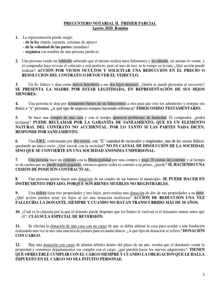 PREGUNTERO NOTARIAL II 1 PARCIAL Romi ACT 24 08 23 PDF Donación