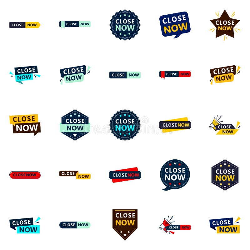 Act Now and Close Text Banners Pack of 25 Stock Vector Illustration