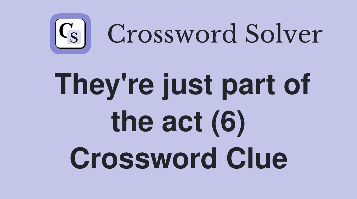 They #39 re just part of the act (6) Crossword Clue Answers Crossword