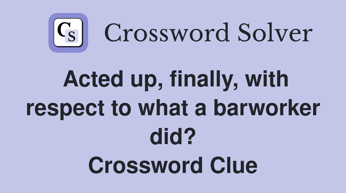 Acted up finally with respect to what a barworker did? Crossword