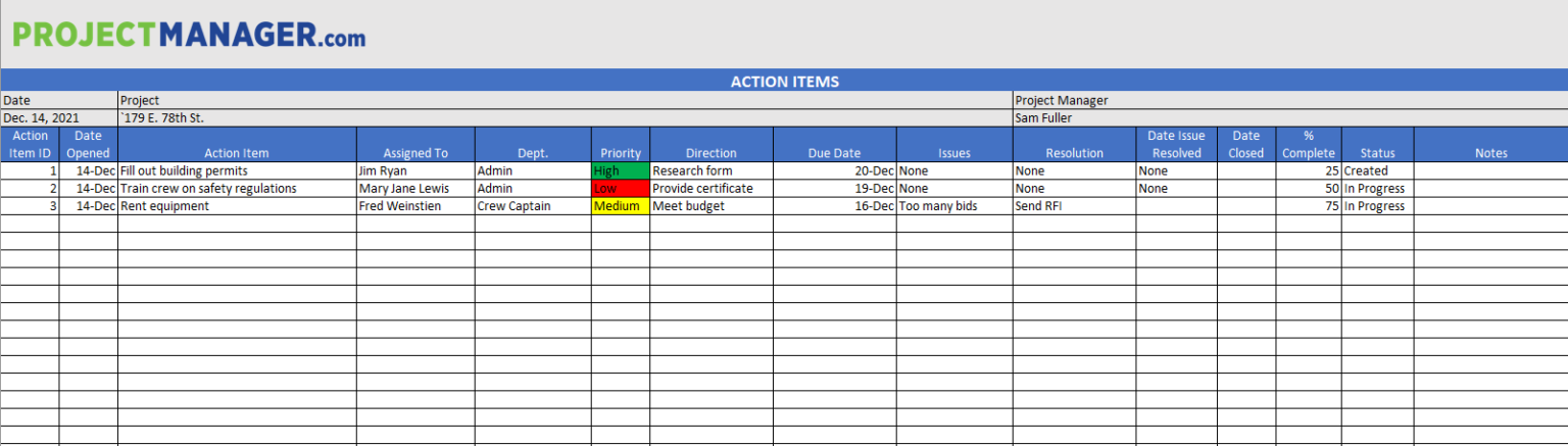 Free Action Items Template for Excel ProjectManager com