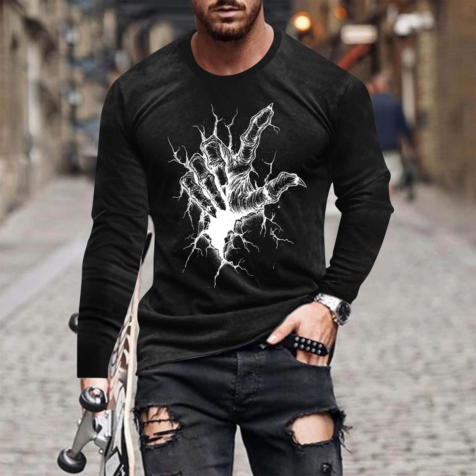 Dolkfu Active Men Shirts Pumpkin Funny Tees Crew Neck Long Sleeve