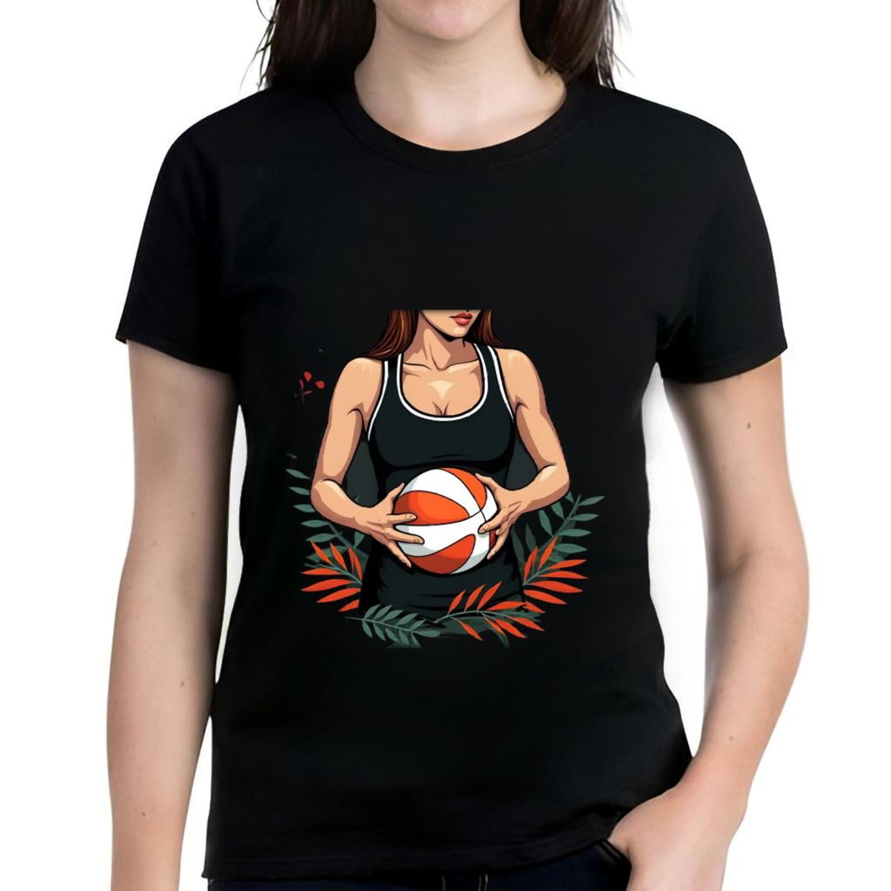 Cotton Short Sleeve T Shirt with Graphic Basketball Design and Green