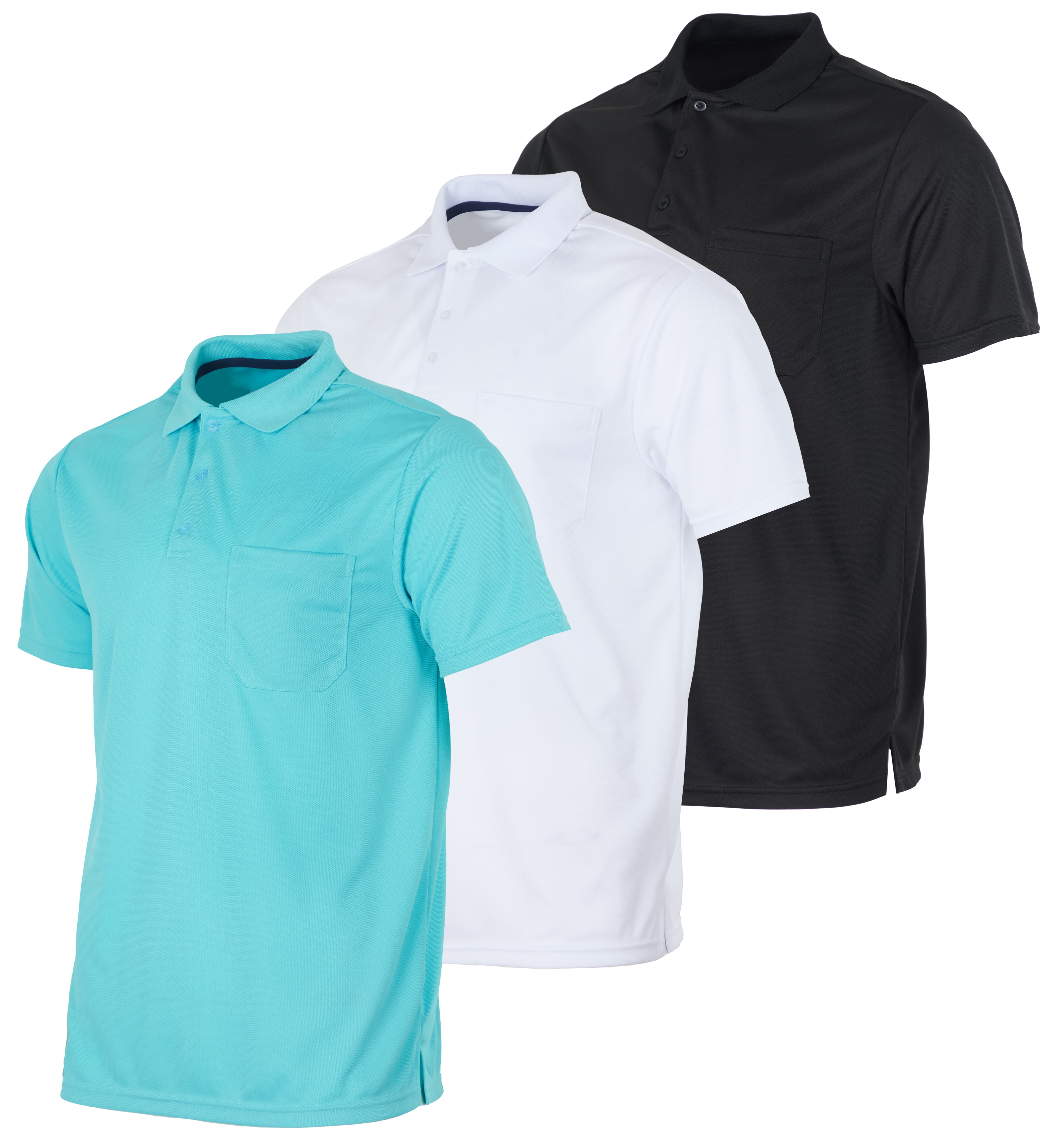 Real Essentials 3 Pack: Mens Short Sleeve Dry Fit Collared Polo Shirt