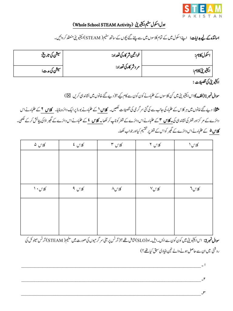 Whole School STEAM Activity Reporting Template Urdu Eld8xc PDF