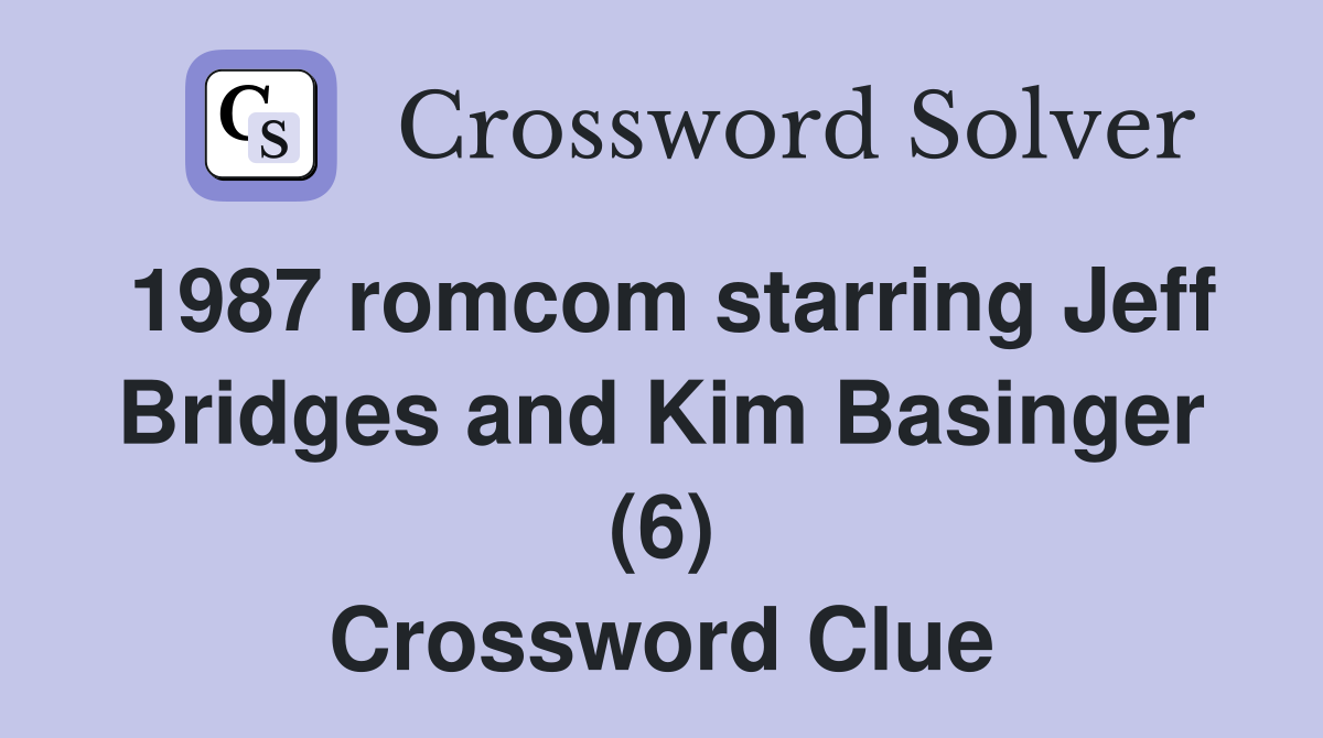1987 romcom starring Jeff Bridges and Kim Basinger (6) Crossword Clue