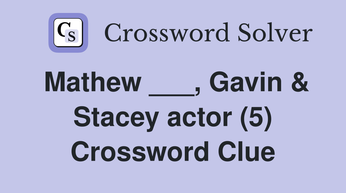 Mathew Gavin Stacey actor (5) Crossword Clue Answers