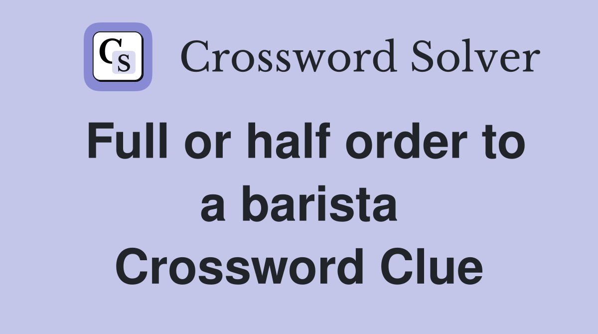 Full or half order to a barista Crossword Clue Answers Crossword Solver