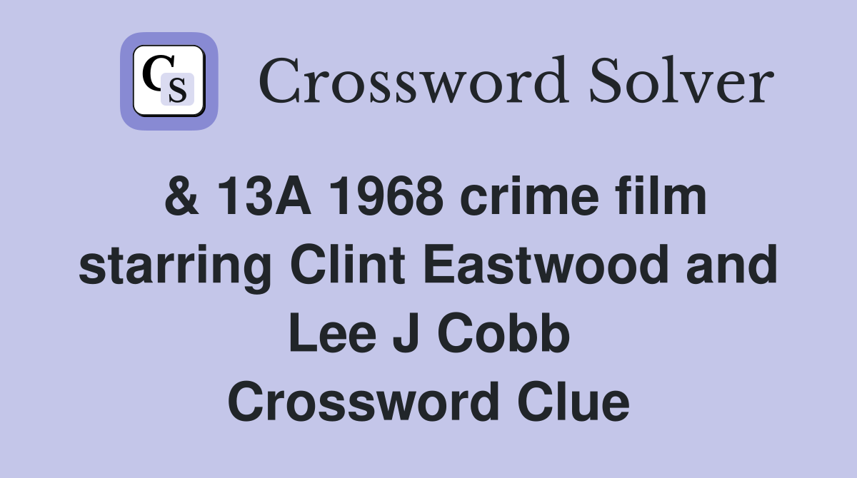 13A 1968 crime film starring Clint Eastwood and Lee J Cobb