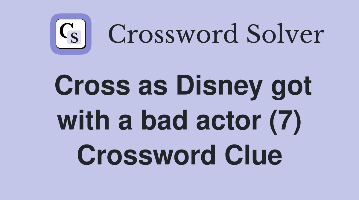 Cross as Disney got with a bad actor (7) Crossword Clue Answers
