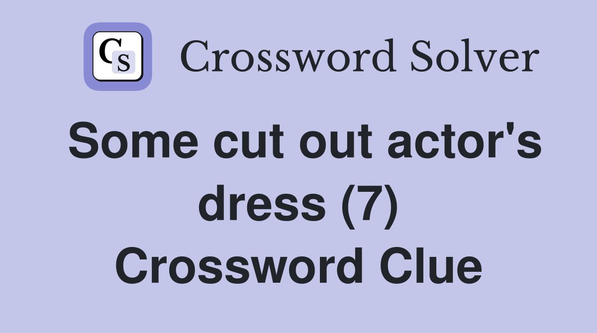 Some cut out actor s dress (7) Crossword Clue Answers Crossword Solver