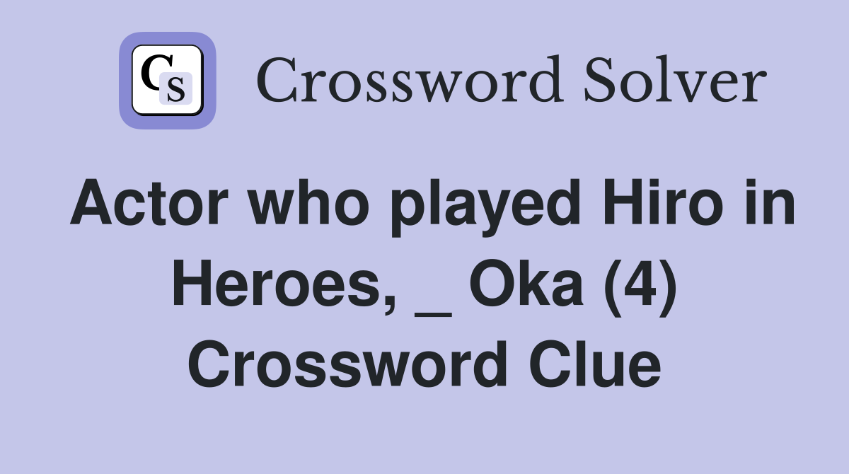 Actor who played Hiro in Heroes Oka (4) Crossword Clue Answers
