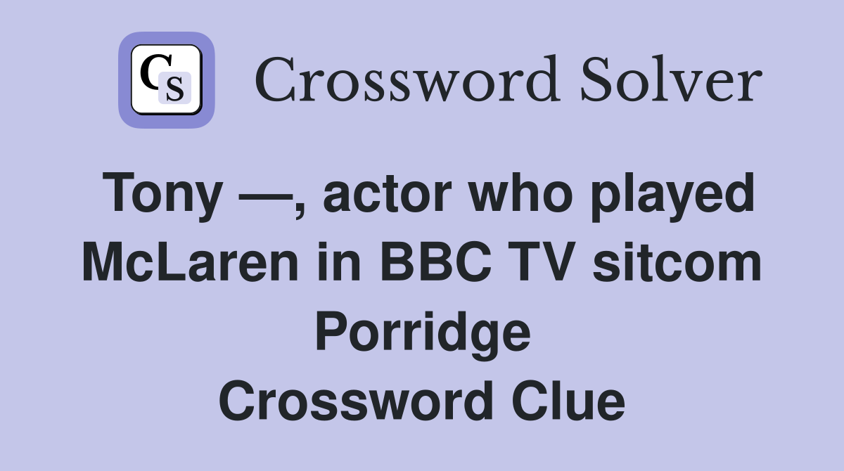 Tony actor who played McLaren in BBC TV sitcom Porridge Crossword