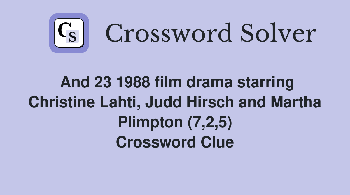 And 23 1988 film drama starring Christine Lahti Judd Hirsch and Martha