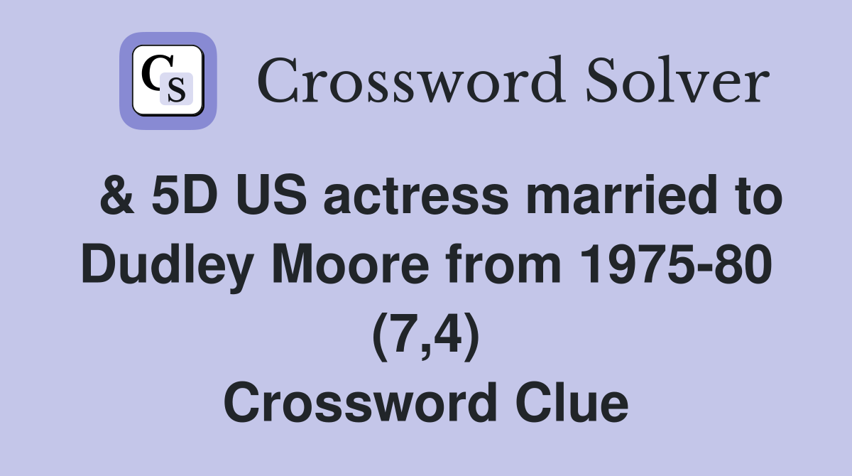 5D US actress married to Dudley Moore from 1975 80 (7 4) Crossword