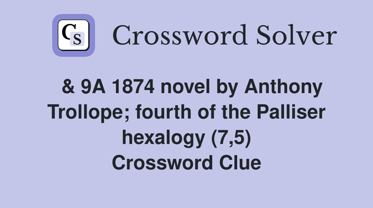 9A 1874 novel by Anthony Trollope fourth of the Palliser hexalogy (7