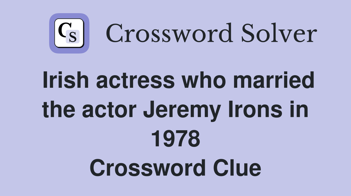 Irish actress who married the actor Jeremy Irons in 1978 Crossword