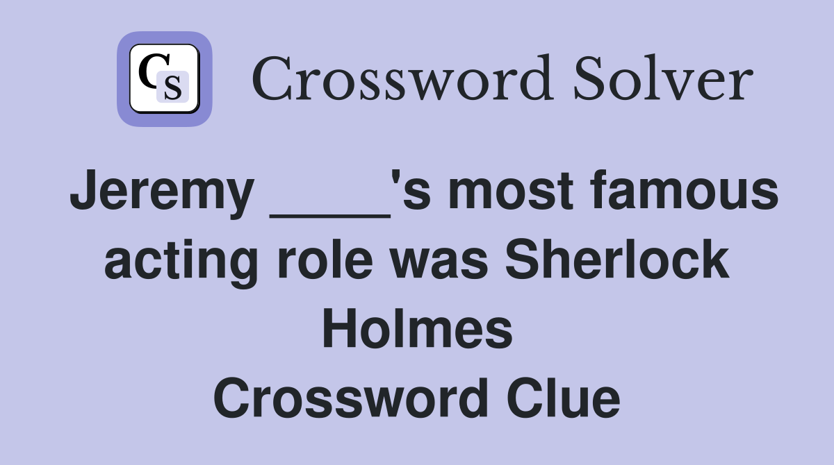 Sherlock Holmes portrayer Jeremy Crossword Clue Answers Crossword