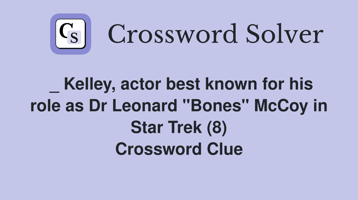 Kelley actor best known for his role as Dr Leonard quot Bones quot McCoy in
