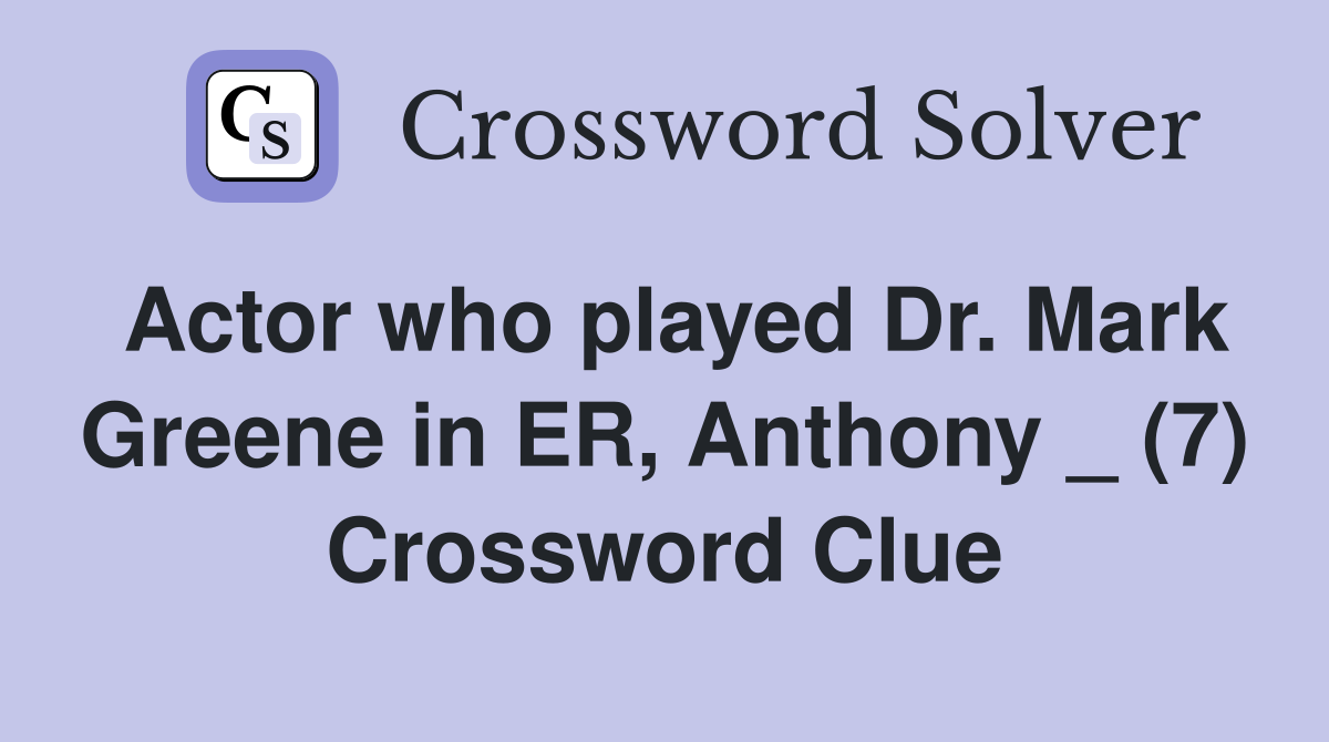 Actor who played Dr Mark Greene in ER Anthony (7) Crossword Clue