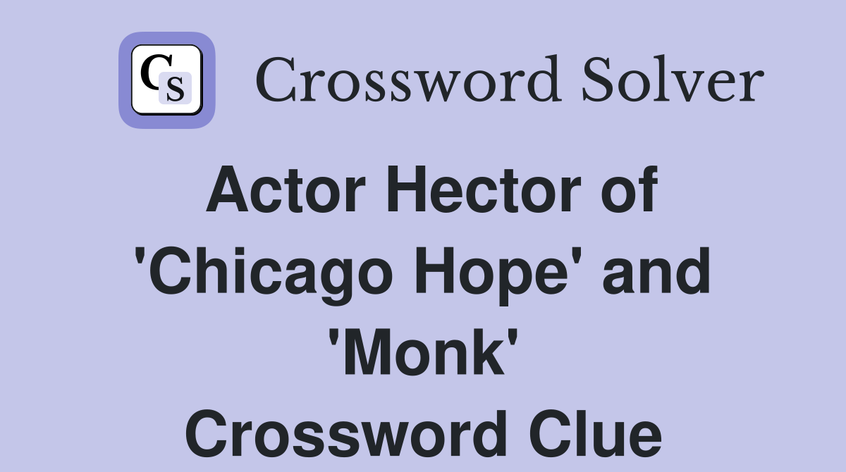 Actor Hector of #39 Chicago Hope #39 and #39 Monk #39 Crossword Clue Answers