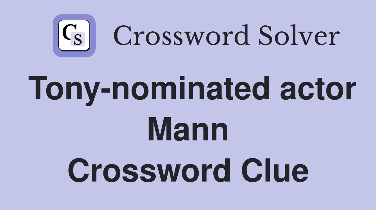 Tony nominated actor Mann Crossword Clue Answers Crossword Solver