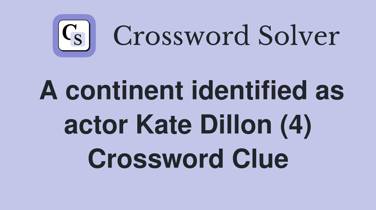 A continent identified as actor Kate Dillon (4) Crossword Clue