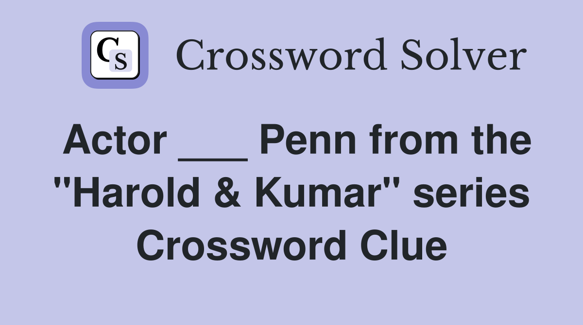 Actor Penn from the quot Harold Kumar quot series Crossword Clue