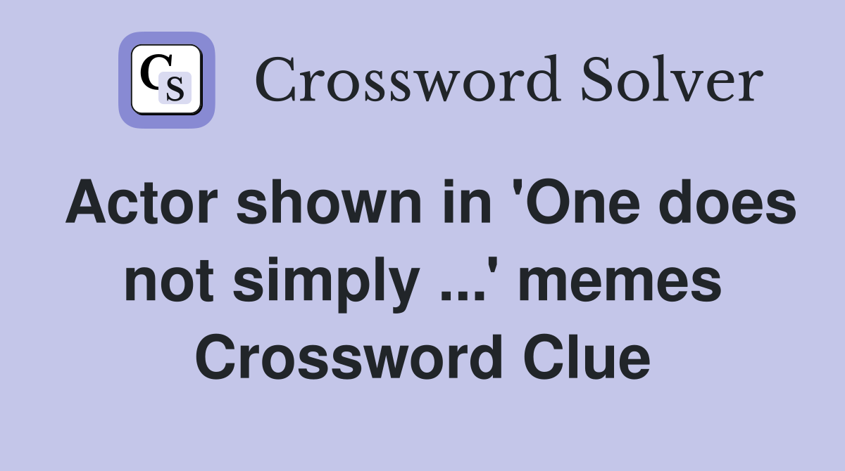Actor shown in #39 One does not simply #39 memes Crossword Clue Answers