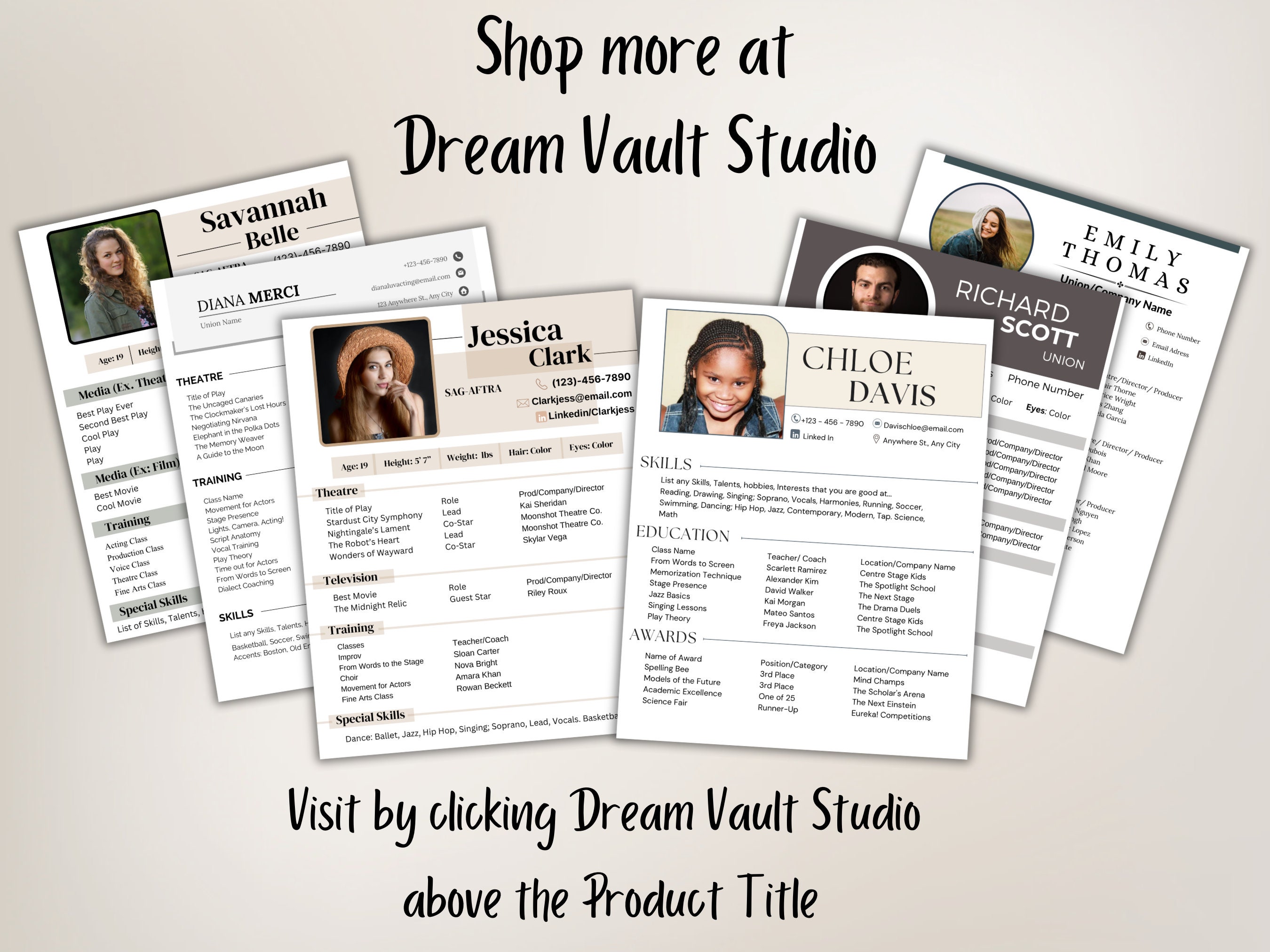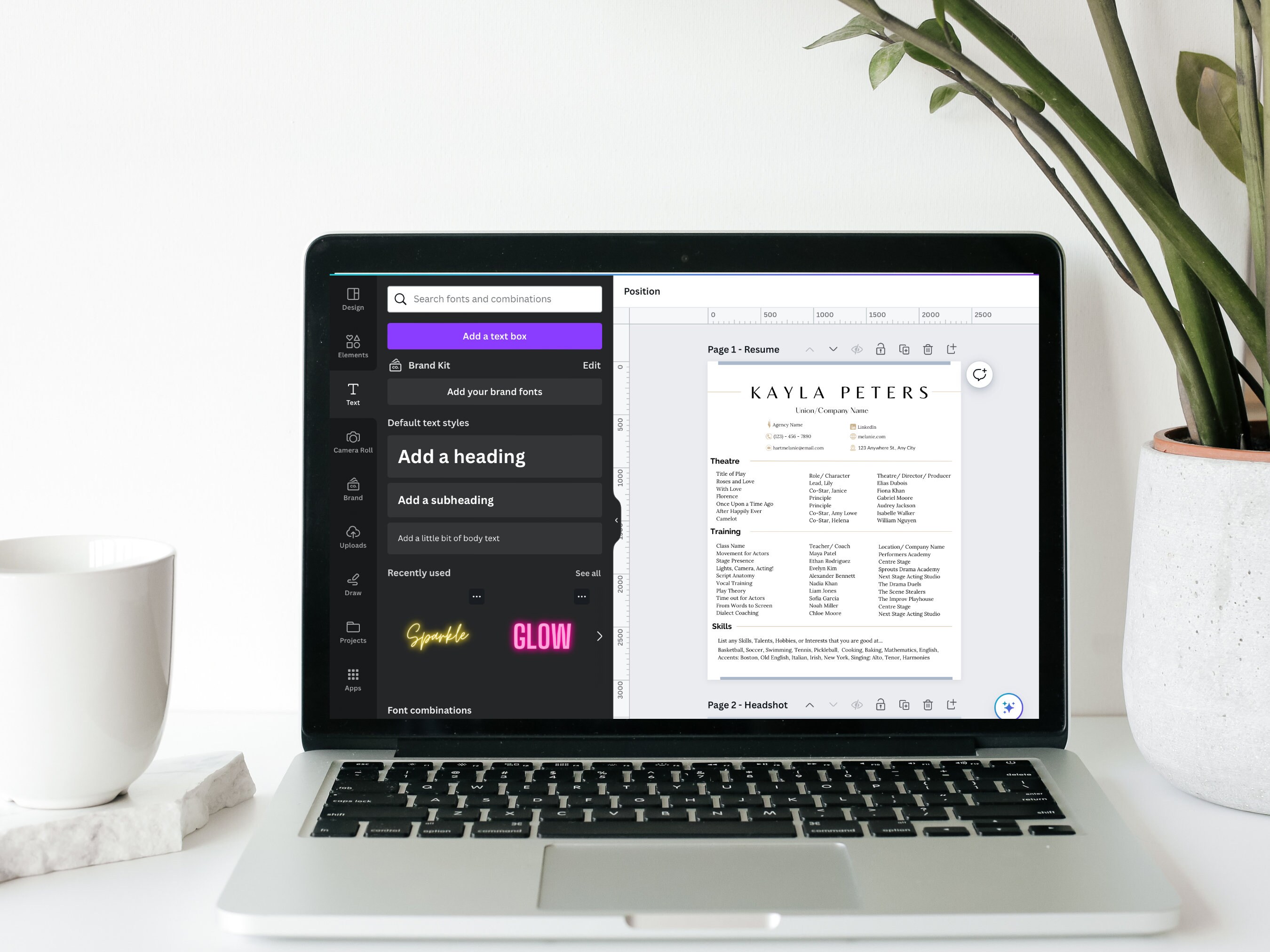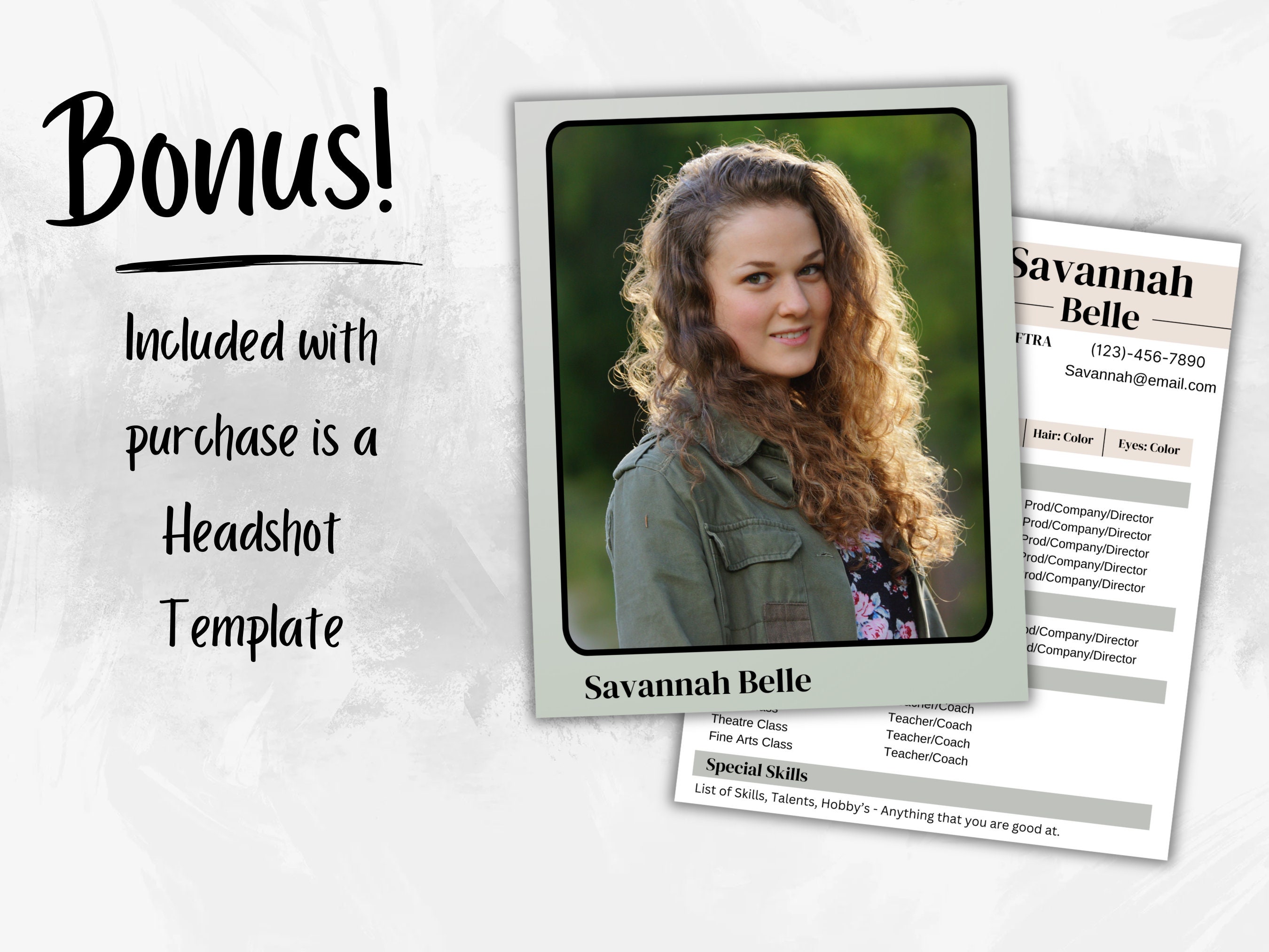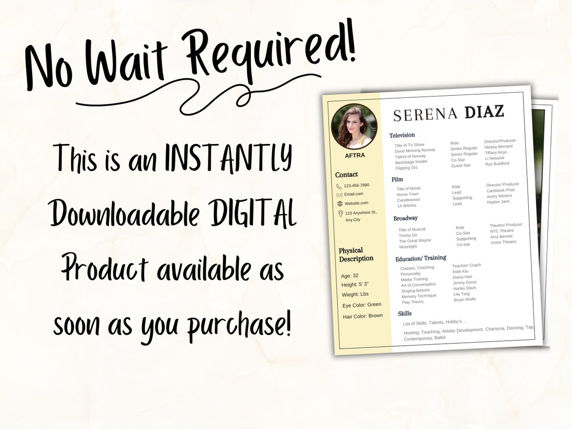 Actors Resume Template for Auditions Talent Agency Editable in Canva CV