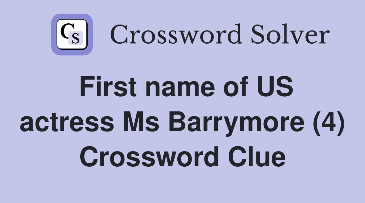 First name of US actress Ms Barrymore (4) Crossword Clue Answers